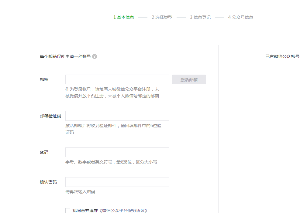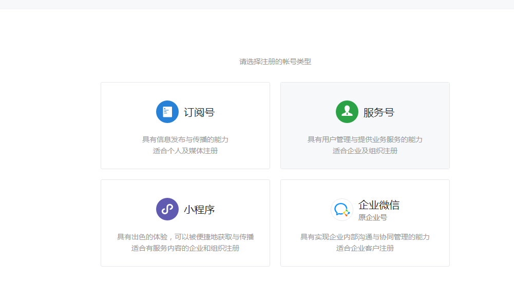 一、在注冊(cè)小程序錢(qián)先注冊(cè)一個(gè)公眾號(hào),因?yàn)樯暾?qǐng)公眾號(hào)的下面才能申請(qǐng)小程序,這樣對(duì)于我們來(lái)說(shuō)就交一個(gè)費(fèi)就行了,小程序的認(rèn)證費(fèi)就省去了。公眾號(hào)的申請(qǐng)和小程序的申請(qǐng)流程是一樣的,在這里說(shuō)的就是申請(qǐng)頁(yè)面和登錄頁(yè)面的,直接進(jìn)入小程序的官網(wǎng)就可以申請(qǐng)了。