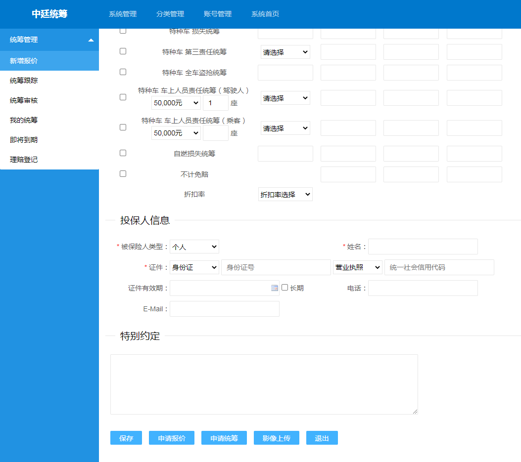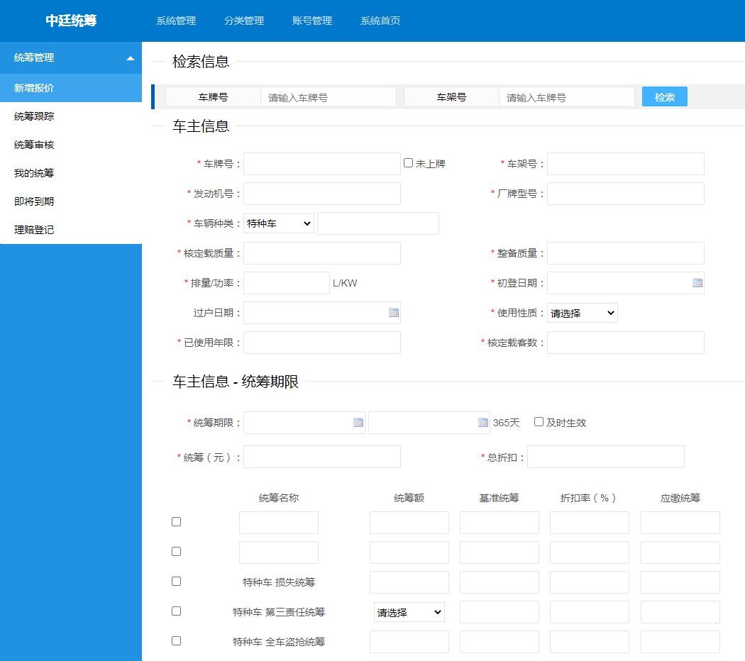 3.1登錄系統(tǒng)成功之后選擇車輛類型【特種車,機(jī)動(dòng)車】,之后錄入具體數(shù)據(jù)