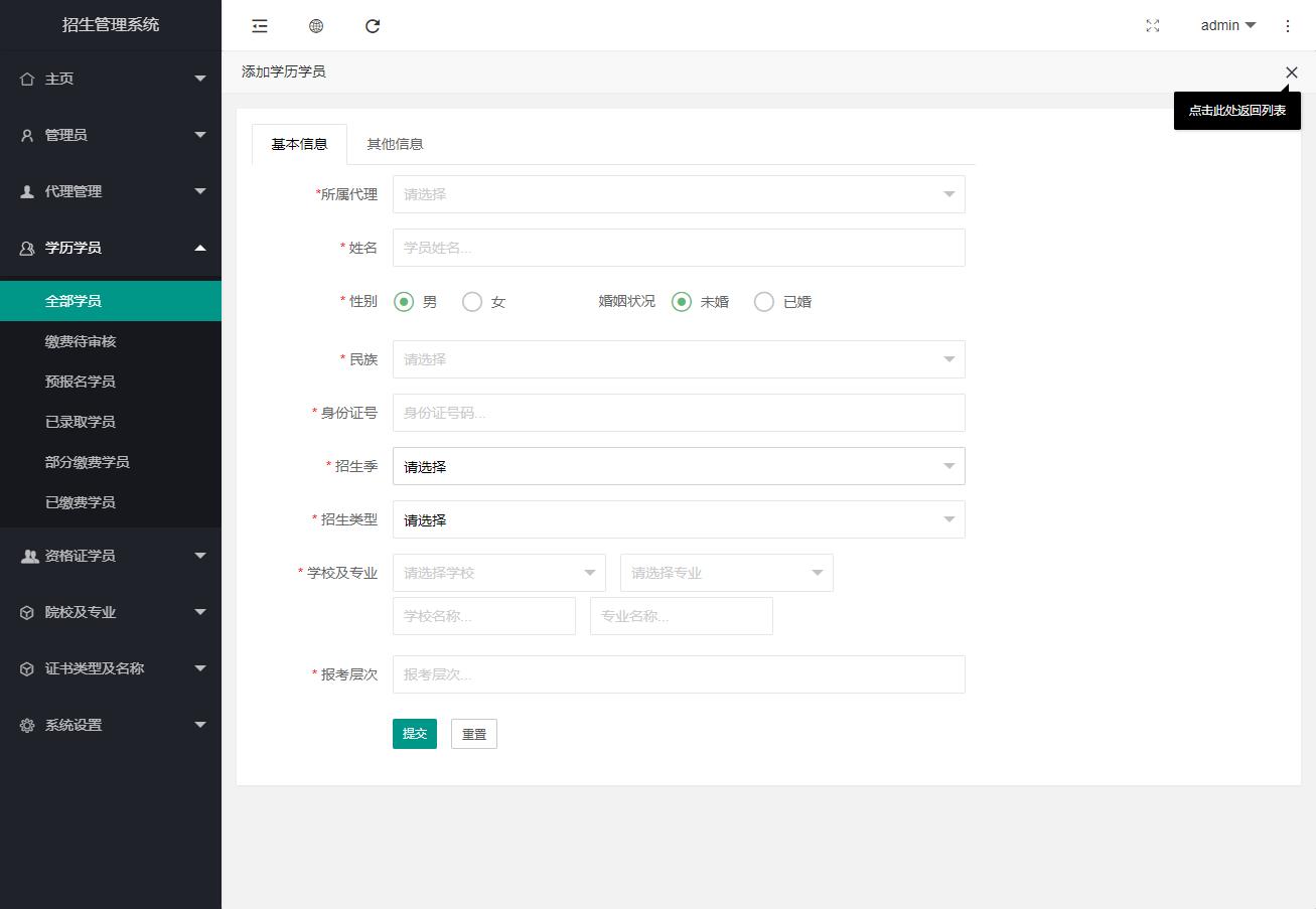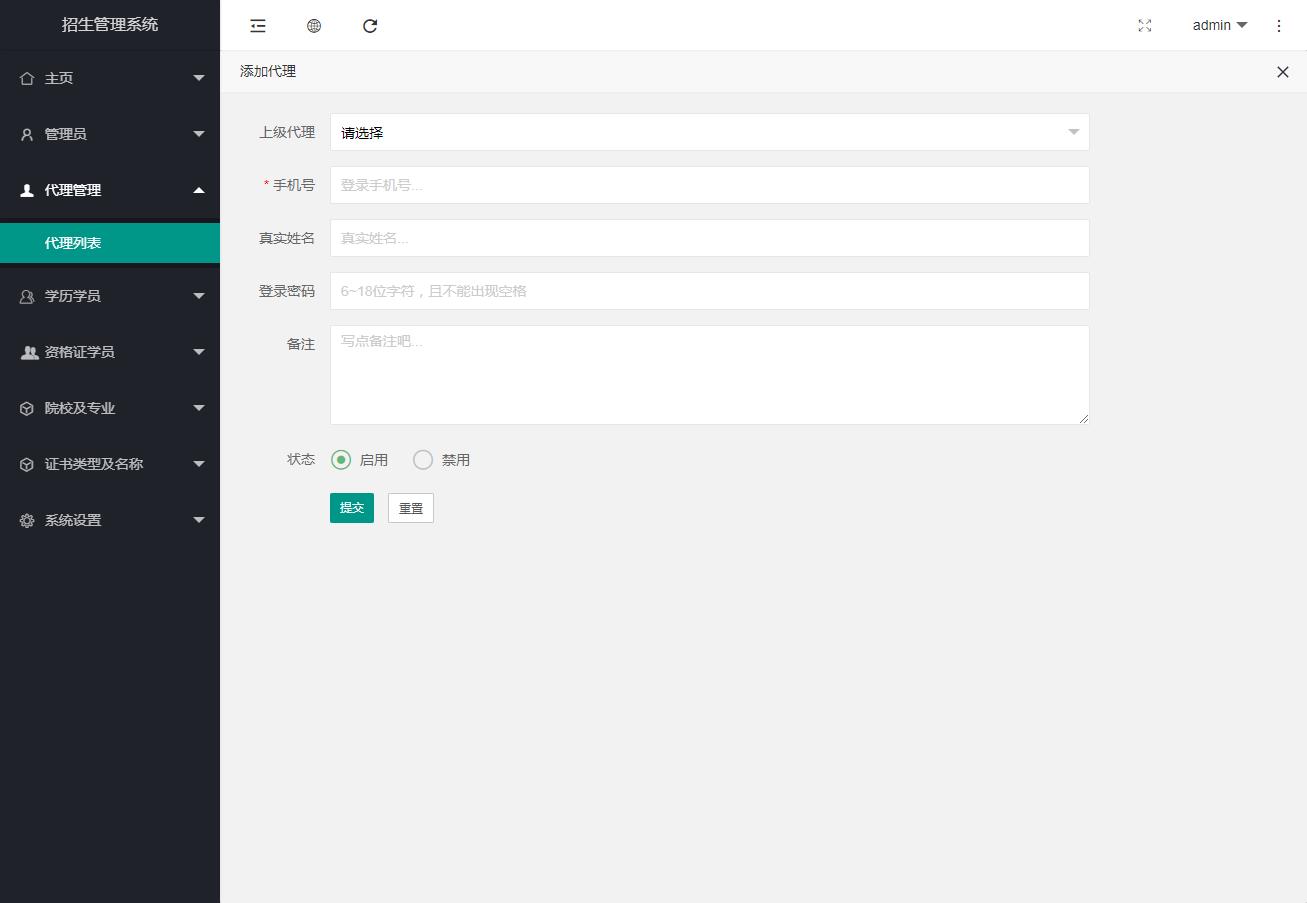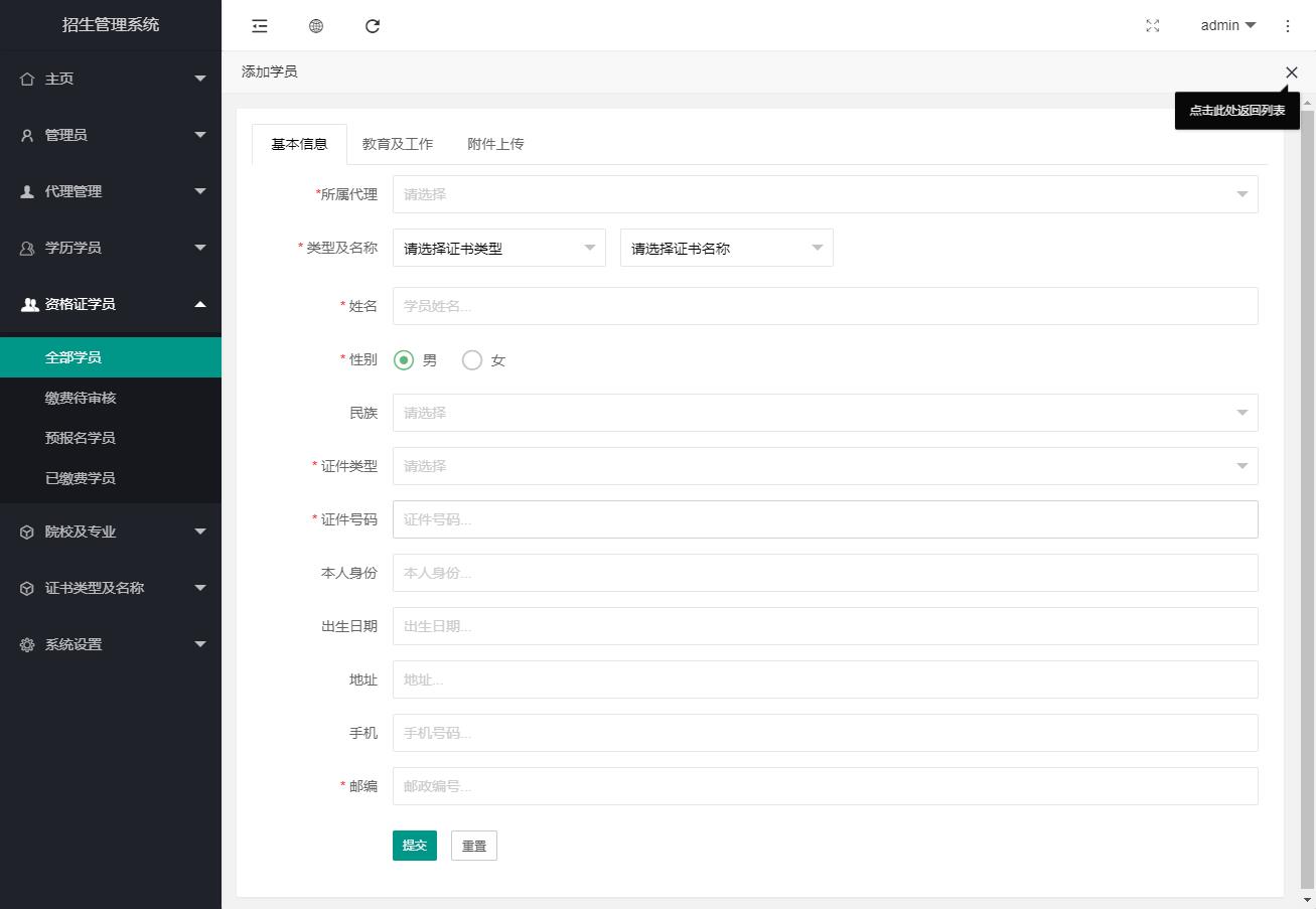 系統(tǒng)主要是方便代理提交學(xué)員信息,管理員后臺(tái)及時(shí)處理并且導(dǎo)出信息,方便后期數(shù)據(jù)匯總。