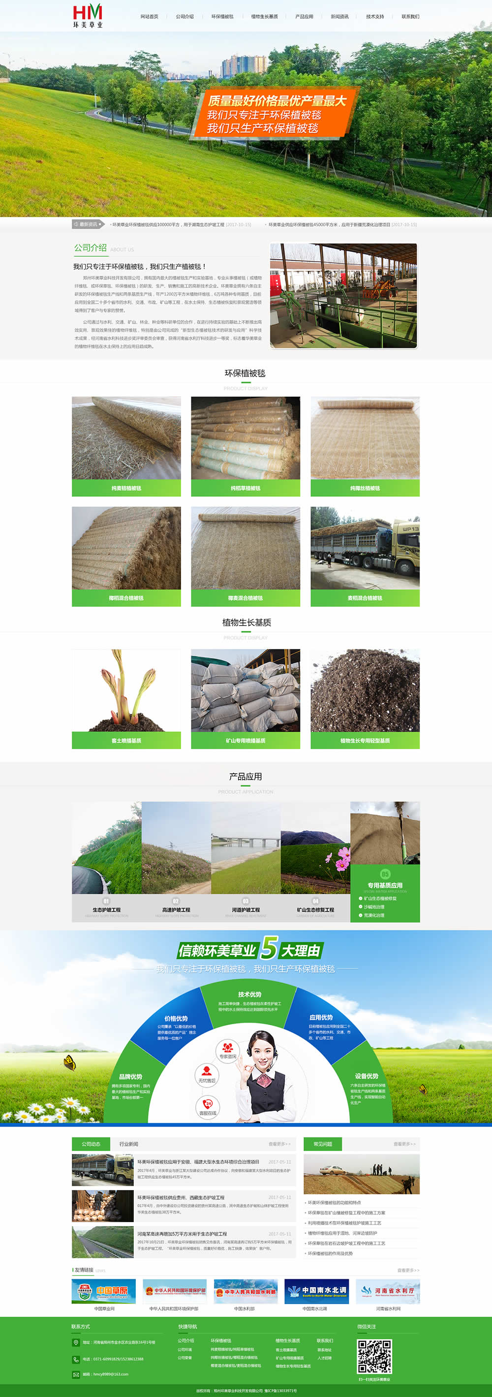 鄭州環(huán)美草業(yè)科技開發(fā)有限公司,擁有國內(nèi)大的環(huán)保植被毯研發(fā)和生產(chǎn)基地,擁有國內(nèi)的客土噴播專用基質(zhì)生產(chǎn)線,是專業(yè)從事環(huán)保植被毯(又稱植物纖維毯、環(huán)保草毯、環(huán)保植被毯、生態(tài)毯)和客土噴播專用基質(zhì)研發(fā)、生產(chǎn)和銷售的科技型企業(yè)。環(huán)美草業(yè)一直致力于產(chǎn)品與技術(shù)的創(chuàng)新,擁有多項(xiàng)專利生產(chǎn)設(shè)備和專利產(chǎn)品,包括六條自主研發(fā)的環(huán)保植被毯生產(chǎn)線和兩條基質(zhì)生產(chǎn)線,年產(chǎn)環(huán)保植被毯1200萬平方米,年產(chǎn)客土噴播專用基質(zhì)8萬立方米。目前產(chǎn)品應(yīng)用到全國二十多個(gè)省市的水利、交通、市政、礦山等工程。